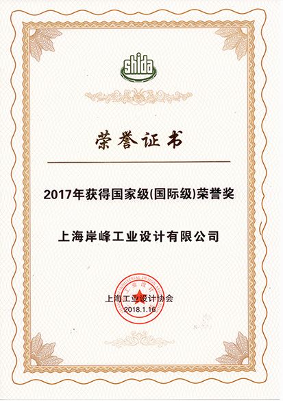 首頁 > 新聞中心 > 岸峰出席上海工業(yè)設(shè)計協(xié)會年會,并榮獲“2017年國家級(國際級)榮譽獎”